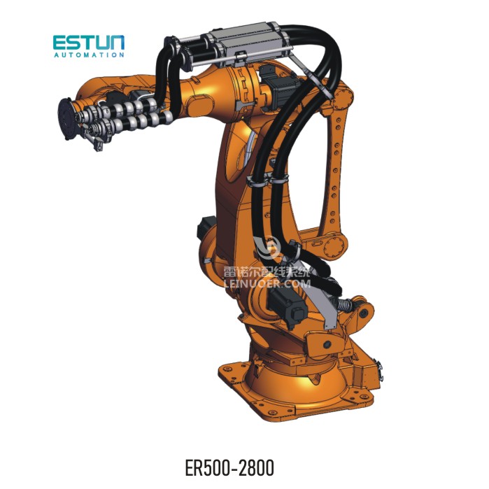 品牌:ESTUN型號:ER500-2800方案:彈簧雙管管線包方案,軸1-6,波紋管Φ68應(yīng)用:搬運(yùn)等